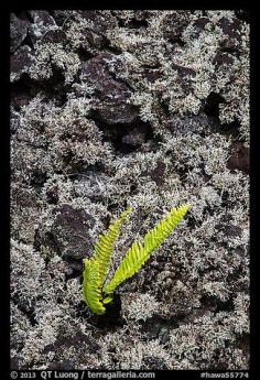 Fern, moss, and hardened lava. Big Island, Hawaii, USA