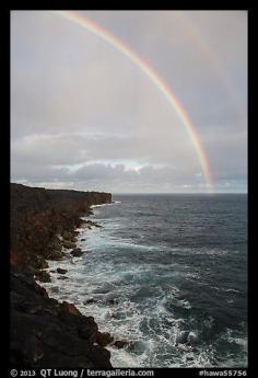 Volcanic coastline and double rainbow. Big Island, Hawaii, USA
