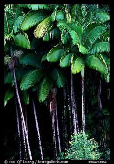 Grove of palm trees (Archontophoenix alexandrae) on hillside. Big Island, Hawaii, USA