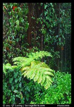 Ferns and leaves. Akaka Falls State Park, Big Island, Hawaii, USA