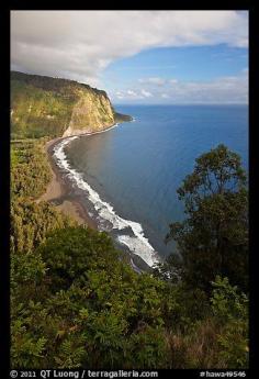 Waipio Beach from overlook, early morning. Big Island, Hawaii, USA