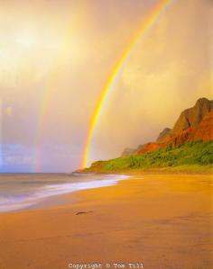Rainbow at Kalalau Beach Na Pali Coast State Park Island of Kauai, Hawaii End of Kalalau Trail Na Pali Cliffs September