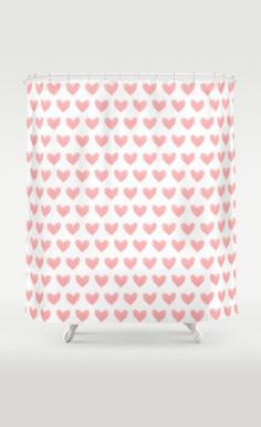 Coral Pink Watercolor Hearts Shower Curtain