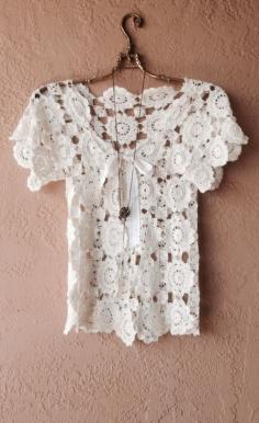 Bohemian gypsy Hand Designed crochet with silk satin ribbon tie top