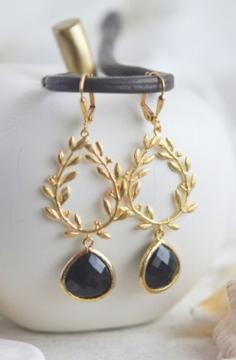 Black and Gold Branch Teardrop Statement Earrings
