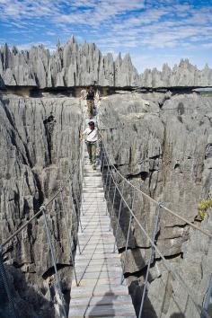 Crossing Tsingy de Bemaraha, a geological wonder in northern Madagascar (by Pierre-Yves Babelon).