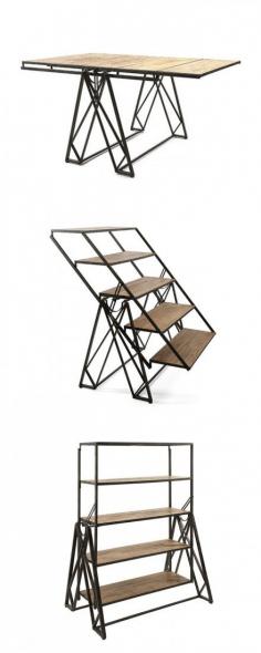 What is it? You decide. This unusual fir-and-iron piece swivels in place for use as a chic dining table, or a standing or leaning bookshelf. The perfect choice for dinner guests, this unique furnishing is an interesting addition to your dining area.