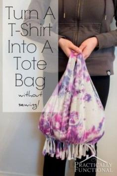 Turn an old t-shirt into a tote bag without sewing in just a few minutes! This tutorial will show you how, so easy!