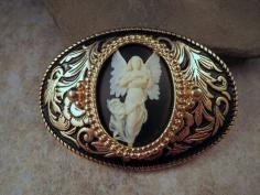 Handmade Antique Gold VictorianAngel Cameo Belt Buckle - 11 Main