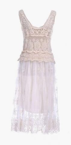 Off-White Floral Crochet Long Semi-Sheer Dress