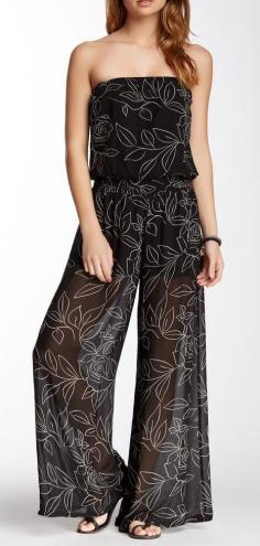 Want & Need | Strapless Woven Print Jumpsuit