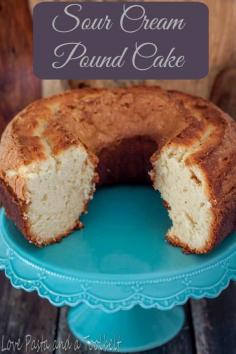 Sour Cream Pound Cake- Love, Pasta and a Tool Belt | sour cream pound cake | pound cake | cake | desserts | recipes |