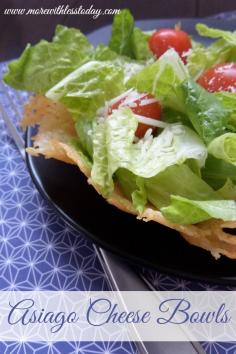 Asiago Cheese Bowls - More With Less Today - Edible Cheese Bowls for Salad - How to Make Edible Cheese Bowls - Asiago Cheese Bowls for Salads and More