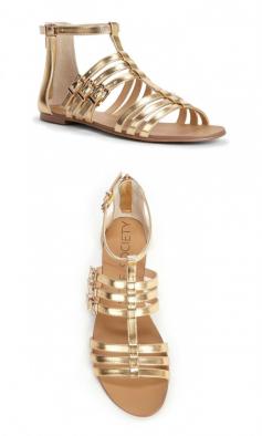 Strappy gold gladiator sandals with an easy back zipper and gold-toned hardware