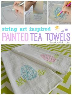String Art Inspired Painted Tea Towels- Create some fun and modern tea towels with this string art inspired stamping technique.