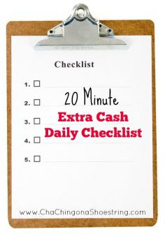 Join the 20 Minute Extra Cash Challenge! Use this handy Daily Checklist to find the best ways to earn extra cash online in just minutes each day!