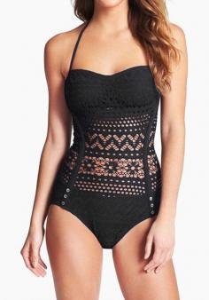 Black Lace Halter Swimsuit - With Removable Halter Straps