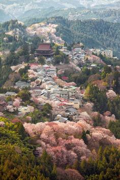 Cherry trees in full bloom, Mount Yoshino, Nara, Japan