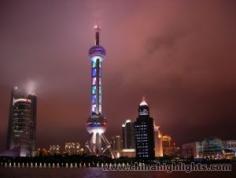 This is the Oriental Pearl TV Tower in Shanghai, China. It is absolutely beautiful!