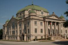 First Christian Church - Tulsa, Oklahoma; the facility was built in 1920 with a magnificent stained glass dome in the center of the auditorium