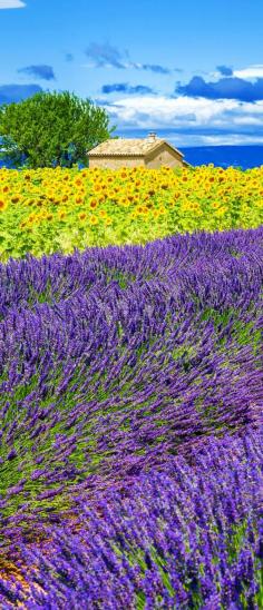 Scenic Lavender and Sunflower Field with Tree in Provence, France | 13 Amazing Photos of Lavender Fields that will Rock your World