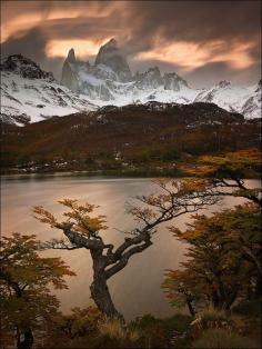 Laguna Capri, Los Glaciares National Park, Argentina | Fitzroy towers over Laguna Capri and the golden Lenga forest.