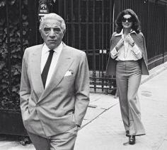 Jackie Kennedy Onassis walking behind her second husband, Aristotle Onassis in Paris. Onassis maintained luxurious home near the Eiffel Tower.