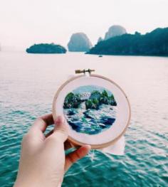 So Inspiring! She embroiders her travel 'snapshots' while she's traveling. What a talent!