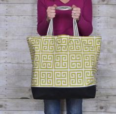 Green Geometric beach bag, Green and black bag, Extra large Beach Bag, Greek key green pool bag, Beach bag, Geometric bag, tote bag