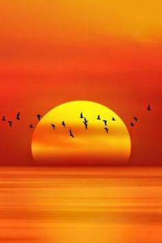 Amazing sunset with birds