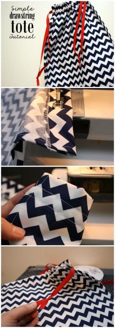 Great beginner sewing project. Easy drawstring tote tutorial - Rae Gun Ramblings