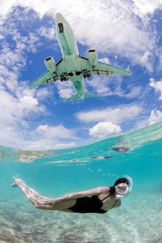 Amazing series of photos >> People swimming with planes overhead. This photo is making me ache to be somewhere warm more that usual!!!