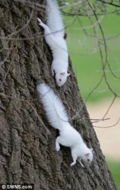 One in every 100,000 squirrels is born an albino, so it is incredibly rare to see two at the same time