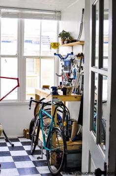 Bike Repair Shop in Simplistic Modern Salt Lake Apartment Beautiful Attainable Home Tour from Fry Sauce & Grits - FrySauceandGrits.com