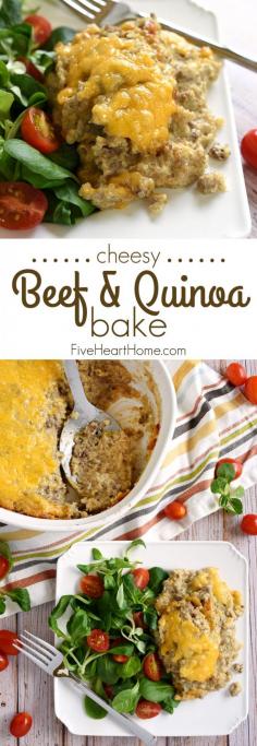 Cheesy Beef & Quinoa Bake ~ a simple, wholesome, easy-to-make casserole featuring just a handful of ingredients including ground beef, quinoa, Greek yogurt, and cheddar...perfect for picky eaters and busy weeknights! | FiveHeartHome.com