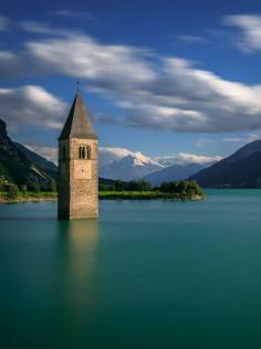 Lost Church and Ortler Mountain, Reschenpass, Italy