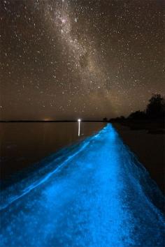 Australia's Amazing Bioluminescent Lake. "An unusually high concentration of Noctiluca scintillans, a bioluminescent microorganism, turned the water a bright, glowing, ethereal blue." Bucket list.