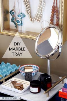 Make a elegant yet inexpensive DIY marble tray with just a few supplies from the hardware store! www.jenwoodhouse....