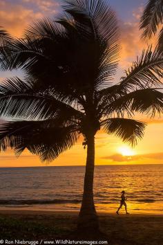 Jogging at sunset at Mai Poina 'Oe La'u Beach Park, Maui, Hawaii