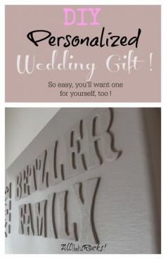 DIY [and super easy] Personalized Wedding Gift AllThatSrocks.com I love how simple she makes this, I think I would paint the letters a different color for contrast.
