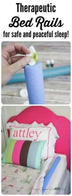 This is GENIUS! Keep your kids in bed with these DIY bed rails using inexpensive pool noodles! Plus, learn the secret to what to put in them to make your kids sleep better than ever before! Full details from Designer Trapped in a Lawyer's Body.