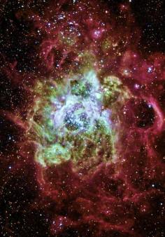 This festively colorful nebula, called NGC 604, is one of the largest known seething cauldrons of star birth seen in a nearby galaxy.