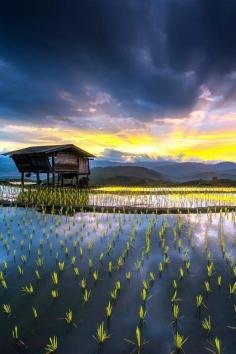 Sunrise over Mae Jam rice terraces, Thailand