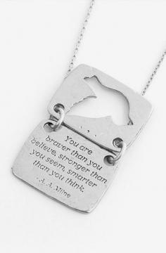 Bird Necklace, Winnie the Pooh, You Are Braver Than You Believe, Inspirational quote necklace