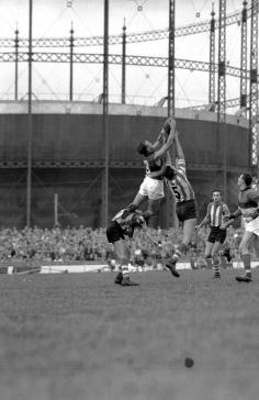 Victoria, Australia 1960s: April 1960: Footscray footballer Ted Whitten taking a mark against North Melbourne at the ...