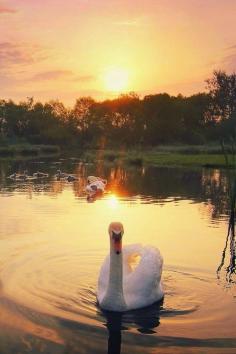 Colorful sunset and Swan