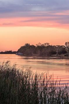 Houseboat among the gumtrees at sunset, Murray River South Australia by John White Photos