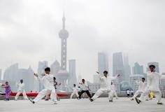 A morning walk along the Bund in Shanghai offered glimpses of tai chi practitioners and a beautiful view of Pudong from across the Huangpu River.