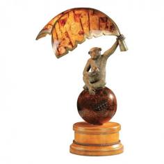 Verdigris Patina Brass Monkey Penshel Banana Leaf Lamp Leather Penshell 1753-833