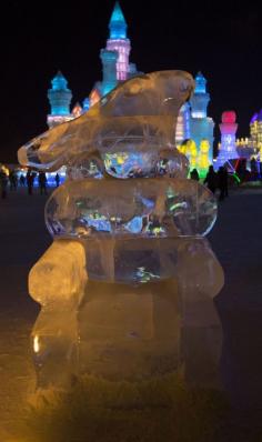 Seat of the Rabbit made of Ice at the Ice and Snow festival in Harbin, China